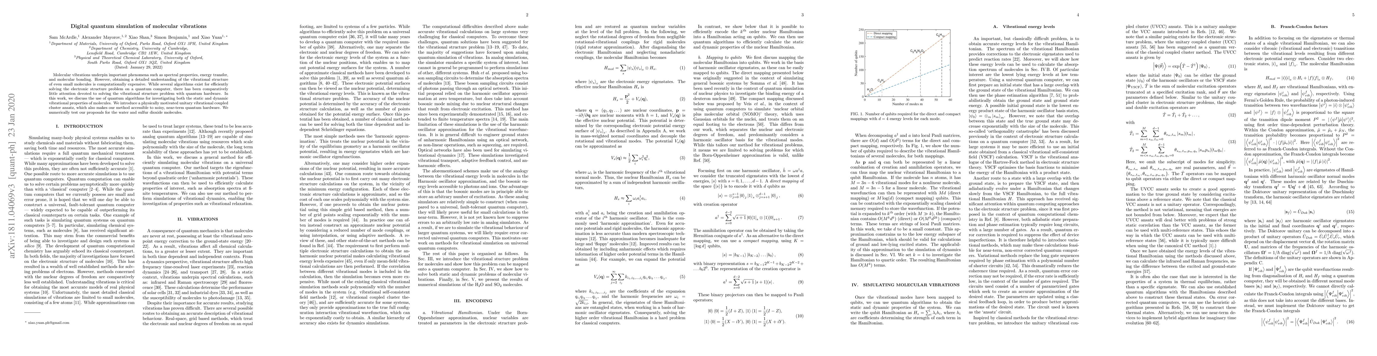 Researchers developed a quantum algorithm to simulate molecular vibrations on near-term quantum hardware, enabling detailed understanding of small molecules with reduced computational cost.