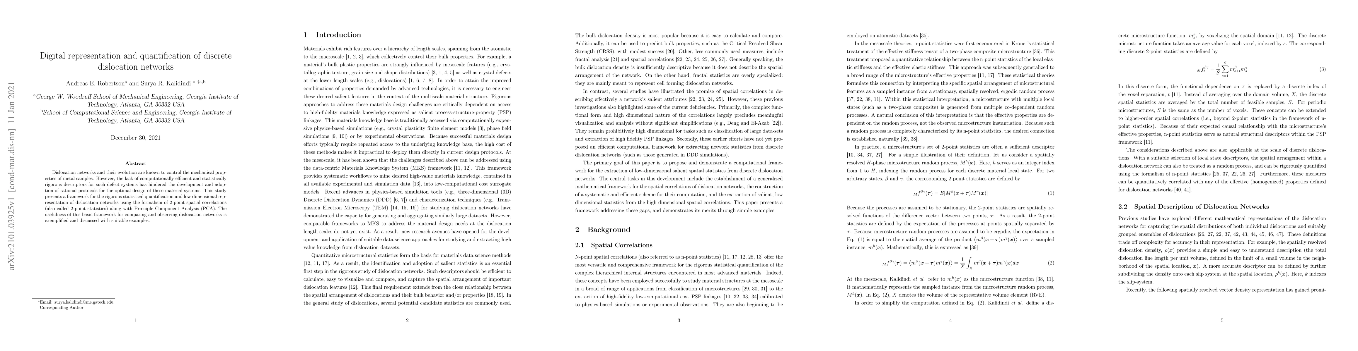 This research introduces a computational framework using 2-point spatial correlations and PCA to statistically quantify and represent dislocation networks, aiding in the design of materials with desired mechanical properties.