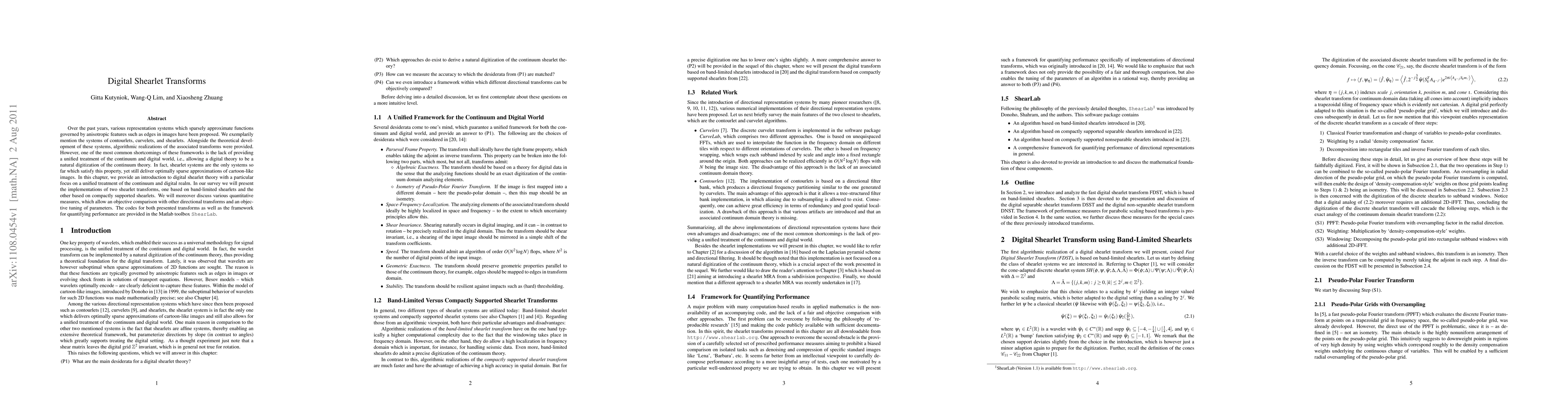 This paper introduces digital shearlet theory, emphasizing a unified treatment of both continuum and digital representations. It presents two implementations of shearlet transforms and discusses their performance metrics, providing a Matlab toolbox for practical application and comparison with other directional transforms.