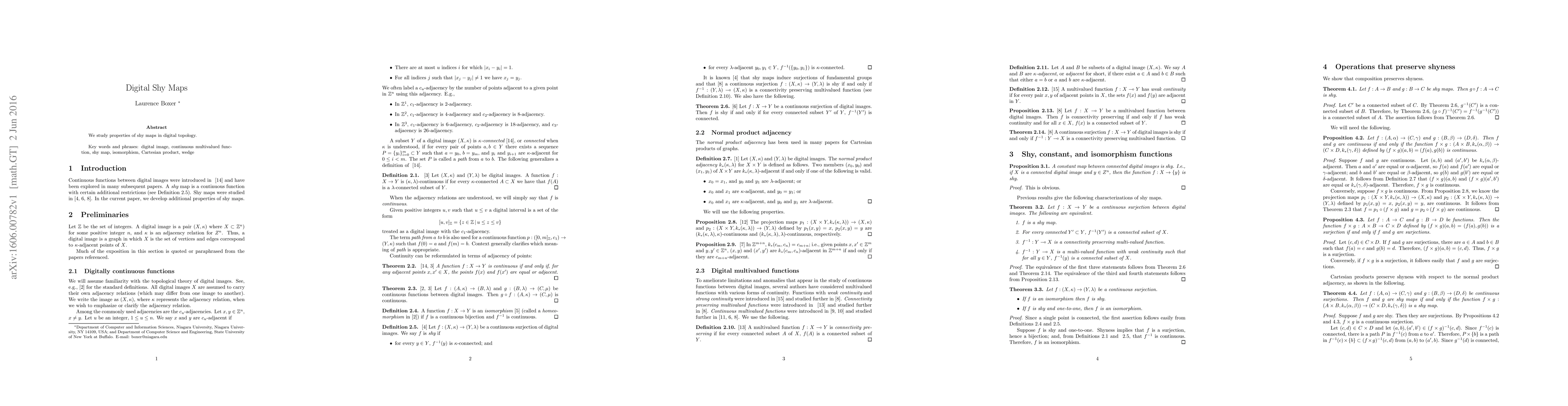 Summary: This research investigates the characteristics and properties of shy maps within the framework of digital topology, aiming to understand their behavior and implications in digital spatial analysis.