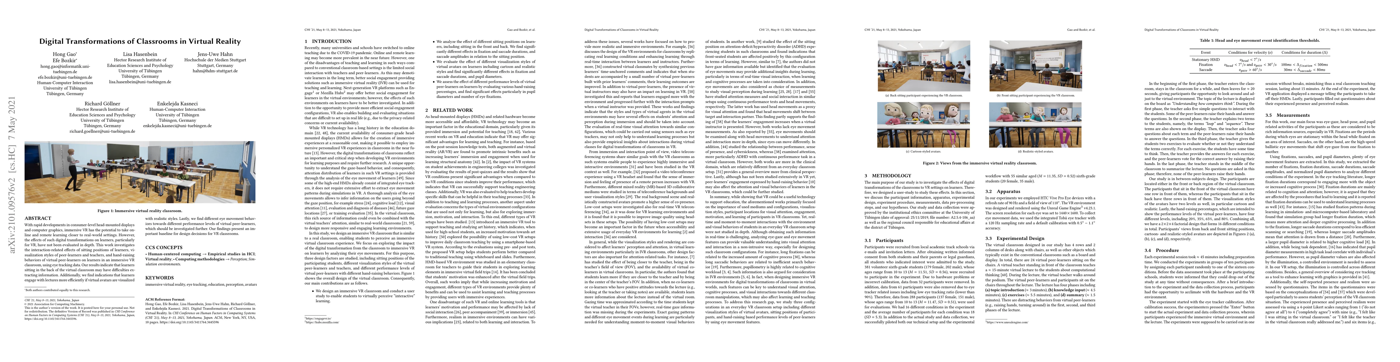 This study explores the impact of various factors in immersive VR classrooms on learners' engagement and information extraction, using eye tracking data. Results suggest that learners seated at the back may struggle, realistic avatars enhance engagement, and eye movements vary with peer performance levels, providing foundational insights for VR classroom design.