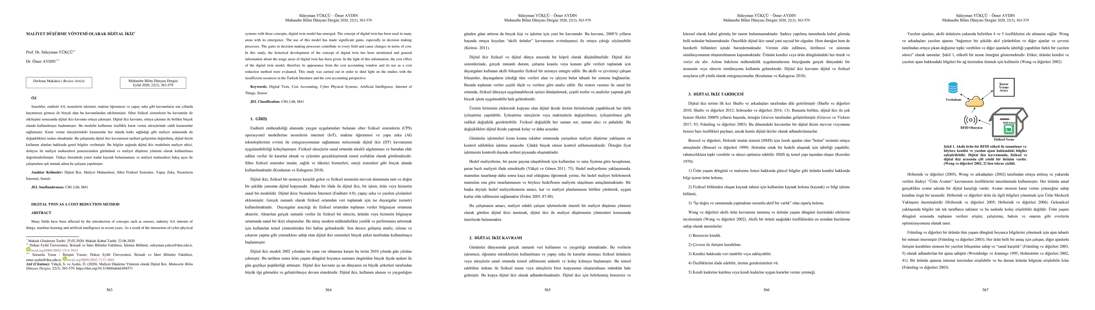 This study explores the historical development and usage areas of digital twin technology, emphasizing its role in cost reduction through improved decision-making processes. It aims to provide insights into the cost accounting perspective, addressing gaps in Turkish literature on the subject.
