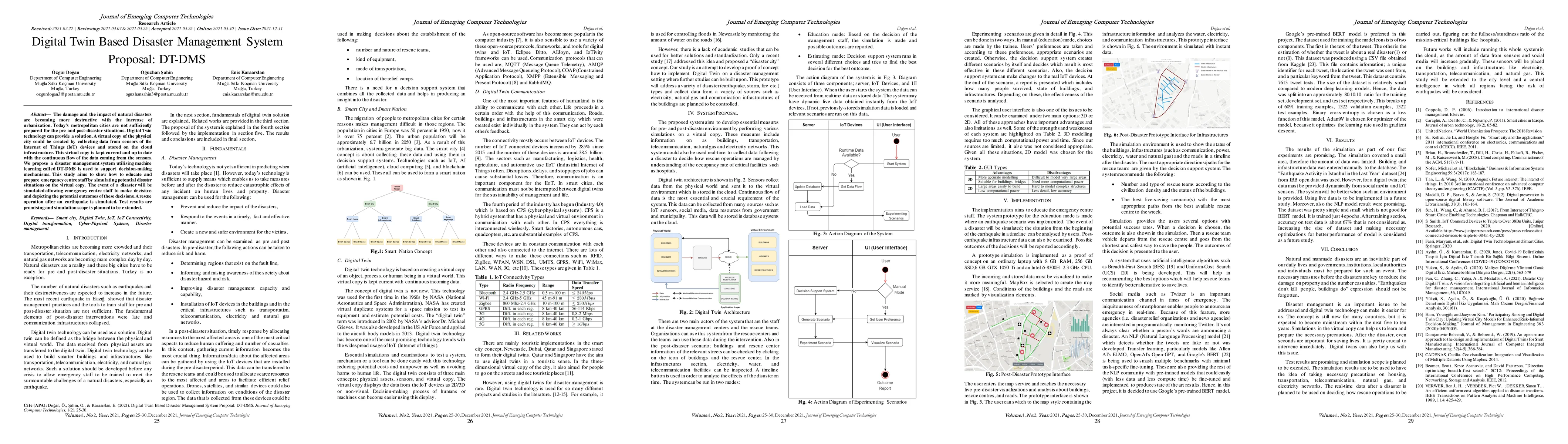 The damage and the impact of natural disasters are becoming more destructive with the increase of urbanization. Today's metropolitan cities are not sufficiently prepared for the pre and post-disaster situations. Digital Twin technology can provide a solution. A virtual copy of the physical city could be created by collecting data from sensors of the Internet of Things (IoT) devices and stored on the cloud infrastructure. This virtual copy is kept current and up to date with the continuous flow of the data coming from the sensors. We propose a disaster management system utilizing machine learning called DT-DMS is used to support decision-making mechanisms. This study aims to show how to educate and prepare emergency center staff by simulating potential disaster situations on the virtual copy. The event of a disaster will be simulated allowing emergency center staff to make decisions and depicting the potential outcomes of these decisions. A rescue operation after an earthquake is simulated. Test results are promising and the simulation scope is planned to be extended.