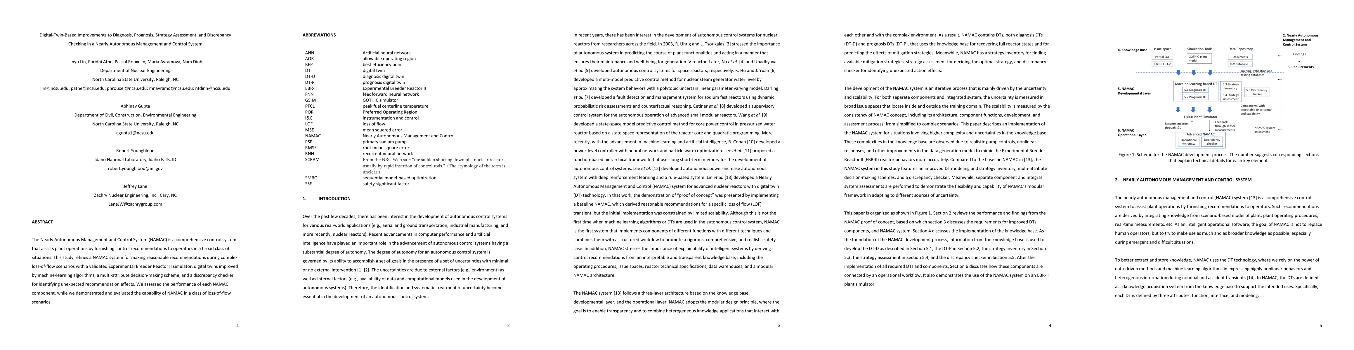 The Nearly Autonomous Management and Control System (NAMAC) is a comprehensive control system that assists plant operations by furnishing control recommendations to operators in a broad class of situations. This study refines a NAMAC system for making reasonable recommendations during complex loss-of-flow scenarios with a validated Experimental Breeder Reactor II simulator, digital twins improved by machine-learning algorithms, a multi-attribute decision-making scheme, and a discrepancy checker for identifying unexpected recommendation effects. We assessed the performance of each NAMAC component, while we demonstrated and evaluated the capability of NAMAC in a class of loss-of-flow scenarios.