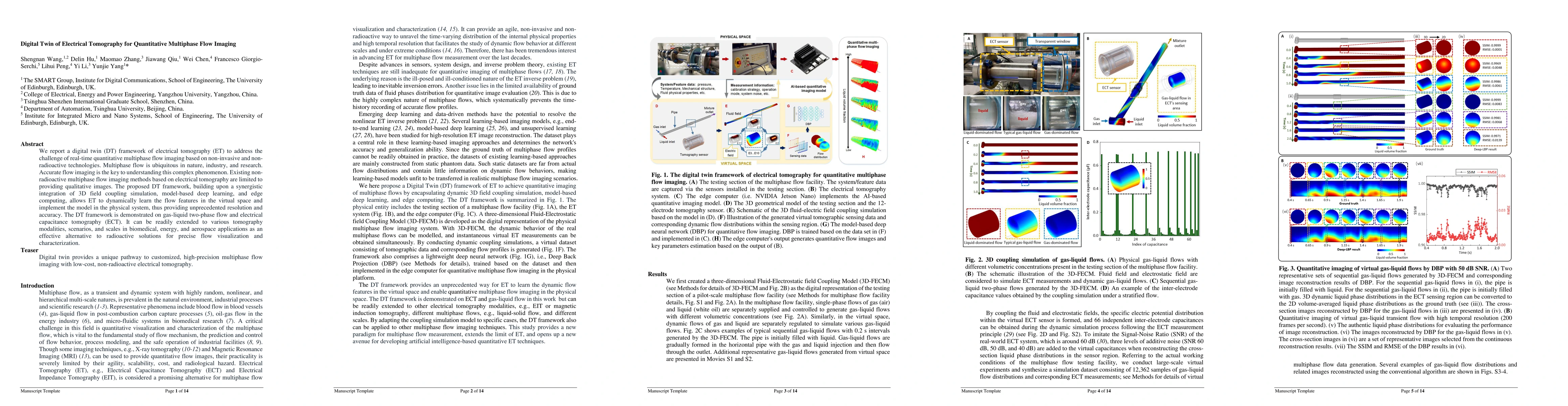 This paper introduces a digital twin framework for electrical tomography to enable real-time, quantitative multiphase flow imaging using non-invasive methods. The framework integrates 3D simulation, deep learning, and edge computing to achieve high-resolution and accurate flow visualization, demonstrated for gas-liquid flows in electrical capacitance tomography, with potential applications across various fields.