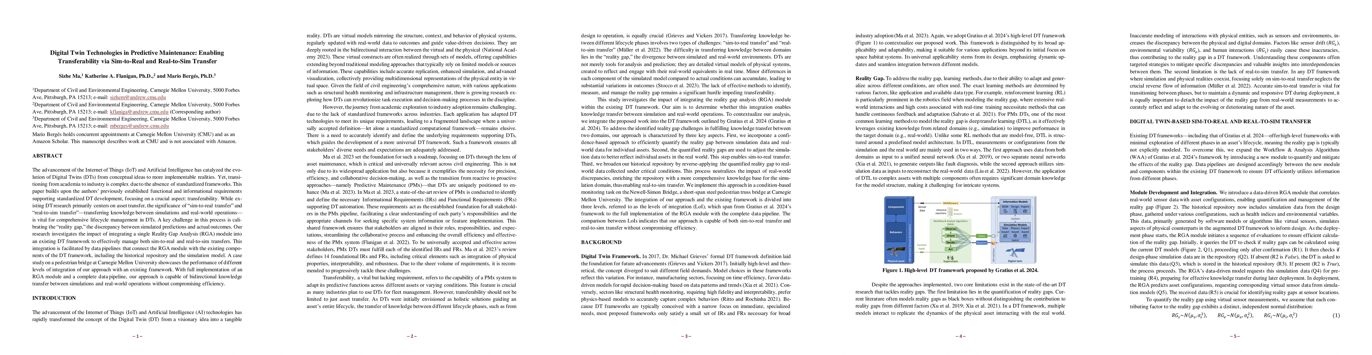 The advancement of the Internet of Things (IoT) and Artificial Intelligence has catalyzed the evolution of Digital Twins (DTs) from conceptual ideas to more implementable realities. Yet, transitioning from academia to industry is complex due to the absence of standardized frameworks. This paper builds upon the authors' previously established functional and informational requirements supporting standardized DT development, focusing on a crucial aspect: transferability. While existing DT research primarily centers on asset transfer, the significance of "sim-to-real transfer" and "real-to-sim transfer"--transferring knowledge between simulations and real-world operations--is vital for comprehensive lifecycle management in DTs. A key challenge in this process is calibrating the "reality gap," the discrepancy between simulated predictions and actual outcomes. Our research investigates the impact of integrating a single Reality Gap Analysis (RGA) module into an existing DT framework to effectively manage both sim-to-real and real-to-sim transfers. This integration is facilitated by data pipelines that connect the RGA module with the existing components of the DT framework, including the historical repository and the simulation model. A case study on a pedestrian bridge at Carnegie Mellon University showcases the performance of different levels of integration of our approach with an existing framework. With full implementation of an RGA module and a complete data pipeline, our approach is capable of bidirectional knowledge transfer between simulations and real-world operations without compromising efficiency.