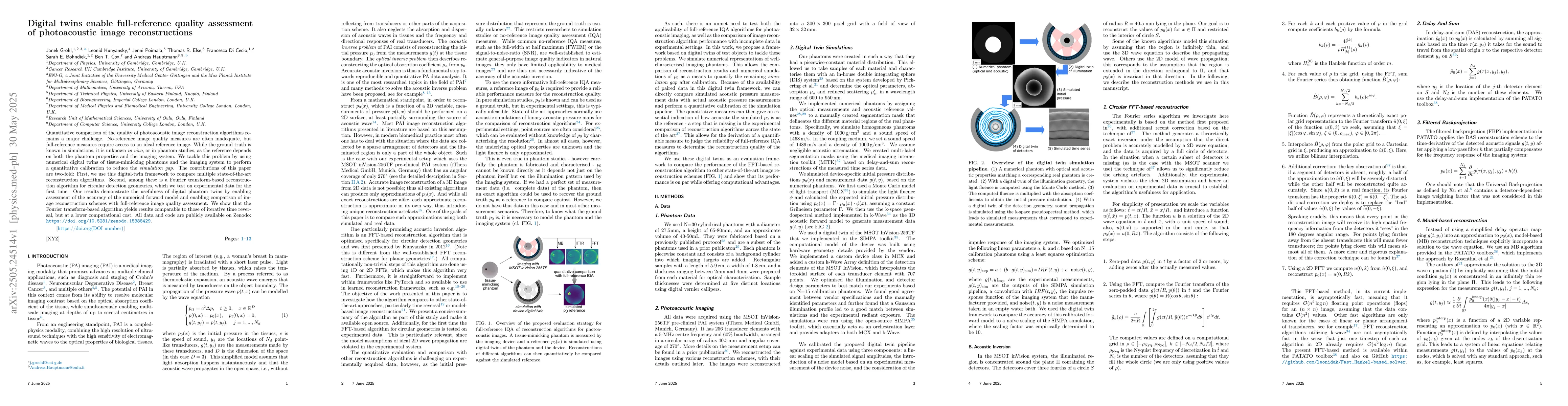 Researchers used digital twins to compare photoacoustic image reconstruction algorithms with full-reference quality assessment, finding a new Fourier transform-based algorithm comparable to iterative time reversal at lower cost.