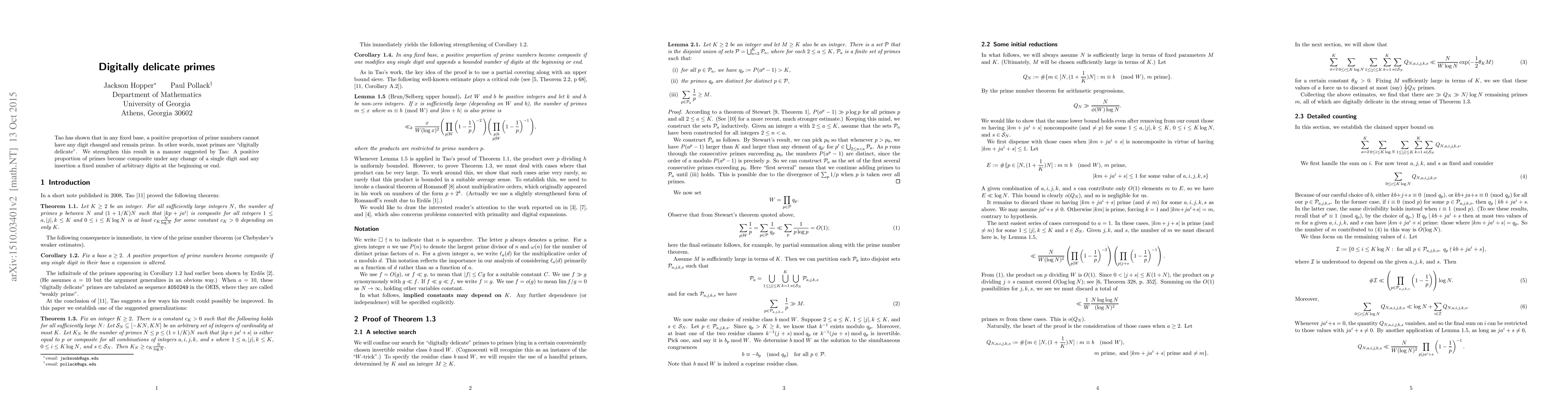 Summary: Research strengthens Tao's result showing that most prime numbers are "digitally delicate," meaning they become composite under any single digit change or insertion of a fixed number of digits at the beginning or end. This extends the understanding of prime stability in numerical bases.