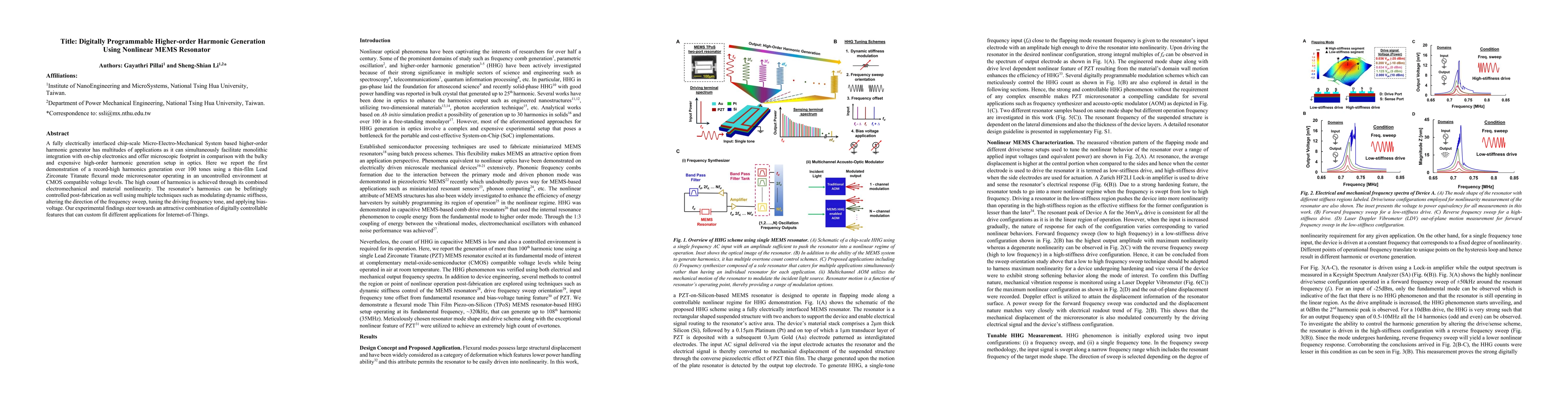 A fully electrically interfaced chip-scale Micro-Electro-Mechanical System based higher-order harmonic generator has multitudes of applications as it can simultaneously facilitate monolithic integration with on-chip electronics and offer microscopic footprint in comparison with the bulky and expensive high-order harmonic generation setup in optics. Here we report the first demonstration of a record-high harmonics generation over 100 tones using a thin-film Lead Zirconate Titanate flexural mode microresonator operating at CMOS compatible voltage levels. The harmonics can be befittingly controlled digitally post-fabrication as well.