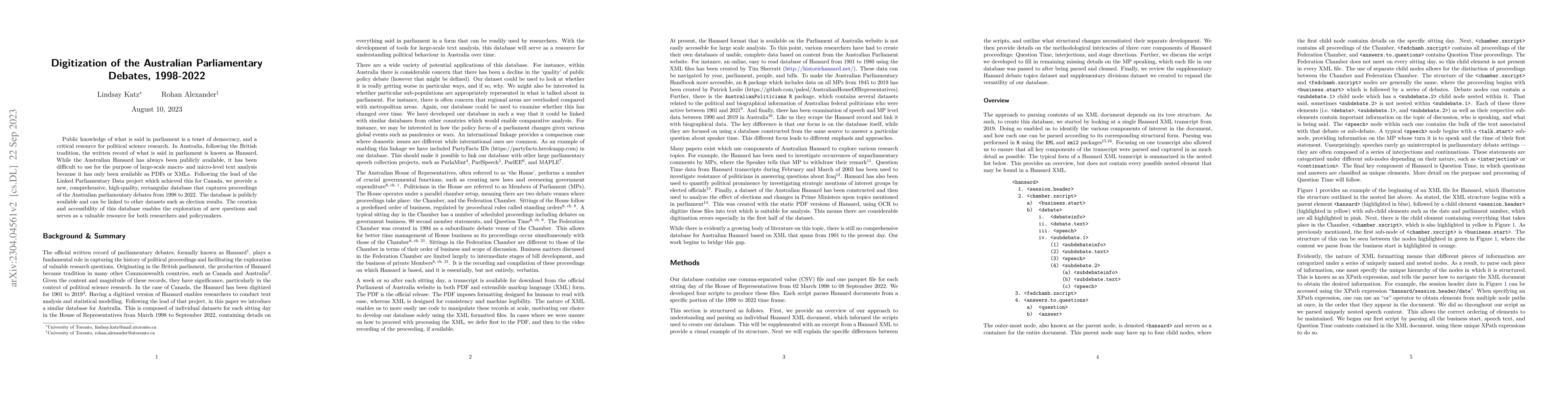 This paper digitizes the Australian parliamentary debates from 1998 to 2022 into a comprehensive, high-quality rectangular database, making it accessible for large-scale text analysis. This new resource, publicly available and linkable to other datasets, enhances public knowledge and supports research in political science and policy analysis.