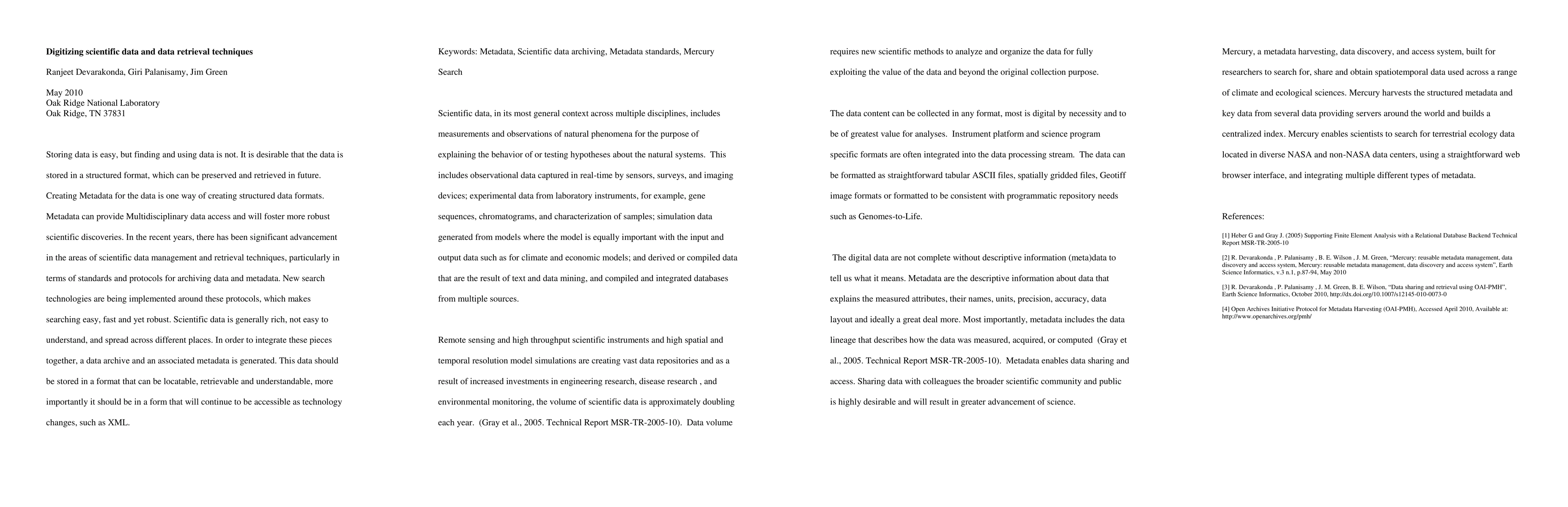 Storing data is easy, but finding and using data is not. It is desirable that the data is stored in a structured format, which can be preserved and retrieved in future. Creating Metadata for the data is one way of creating structured data formats. Metadata can provide Multidisciplinary data access and will foster more robust scientific discoveries. In the recent years, there has been significant advancement in the areas of scientific data management and retrieval techniques, particularly in terms of standards and protocols for archiving data and metadata. New search technologies are being implemented around these protocols, which makes searching easy, fast and yet robust. Scientific data is generally rich, not easy to understand, and spread across different places. In order to integrate these pieces together, a data archive and an associated metadata is generated. This data should be stored in a format that can be locatable, retrievable and understandable, more importantly it should be in a form that will continue to be accessible as technology changes, such as XML.