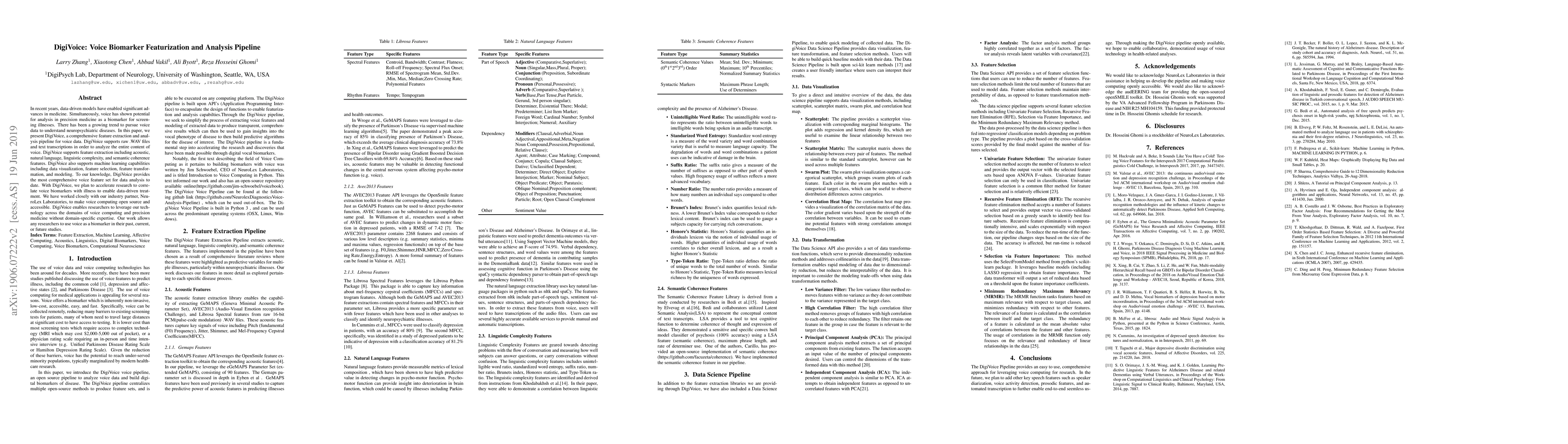 DigiVoice is a comprehensive pipeline for extracting and analyzing voice biomarkers, offering features like acoustic, natural language, and semantic coherence. It aims to accelerate research correlating voice data with illnesses, made open-source in collaboration with NeuroLex Laboratories.
