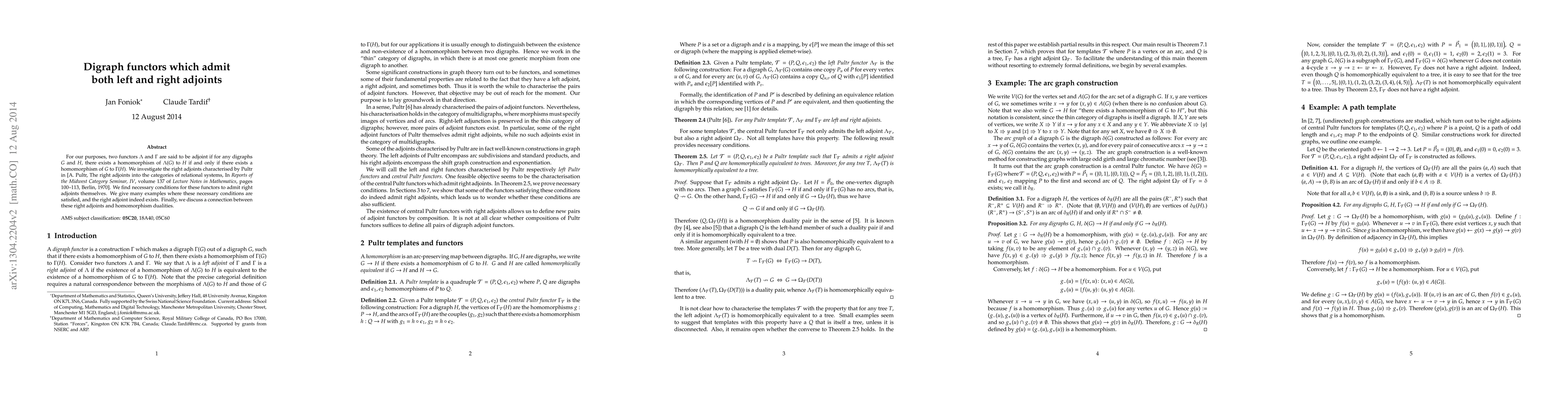 This paper explores digraph functors that have both left and right adjoints, focusing on right adjoints characterized by Pultr. It establishes necessary conditions for these functors to possess right adjoints and provides examples where these conditions hold, confirming the existence of the right adjoints. It also examines the link between these right adjoints and homomorphism dualities.