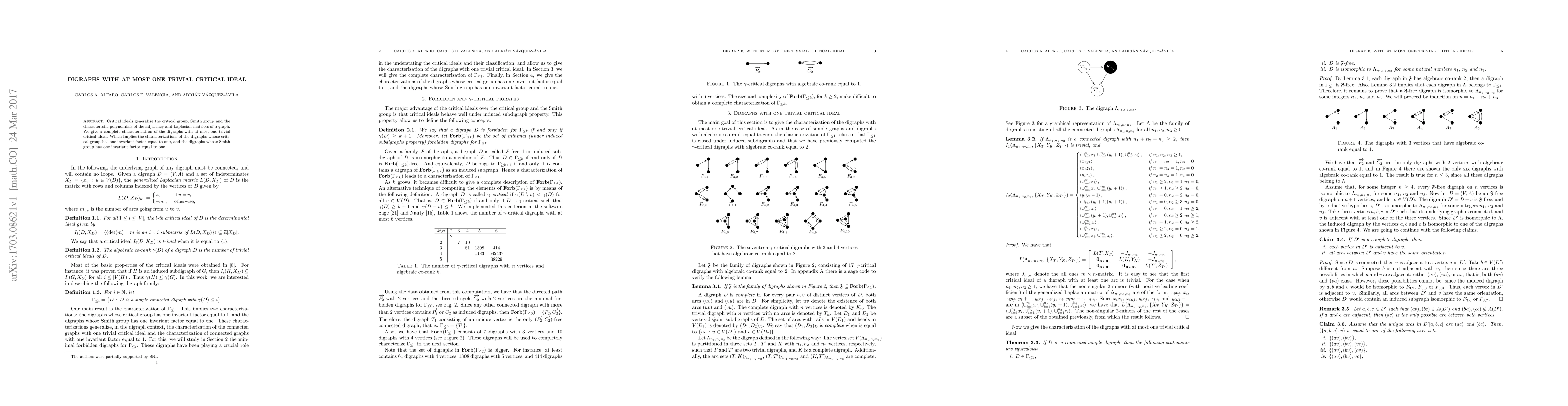 This paper provides a complete characterization of digraphs with at most one trivial critical ideal, extending the understanding of critical groups and Smith groups in graph theory. It also implies the characterization of digraphs with specific invariant factors in their critical groups and Smith groups.