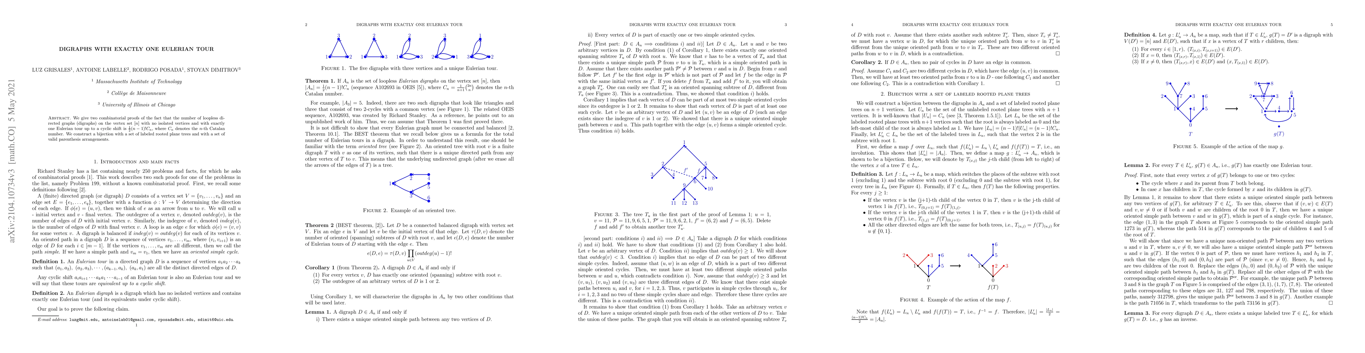 This paper provides combinatorial proofs for the existence of exactly one Eulerian tour in loopless digraphs on $[n]$ without isolated vertices, establishing their count as $\frac{1}{2}(n-1)!C_{n}$, and constructs bijections with labeled rooted plane trees and valid parenthesis arrangements.