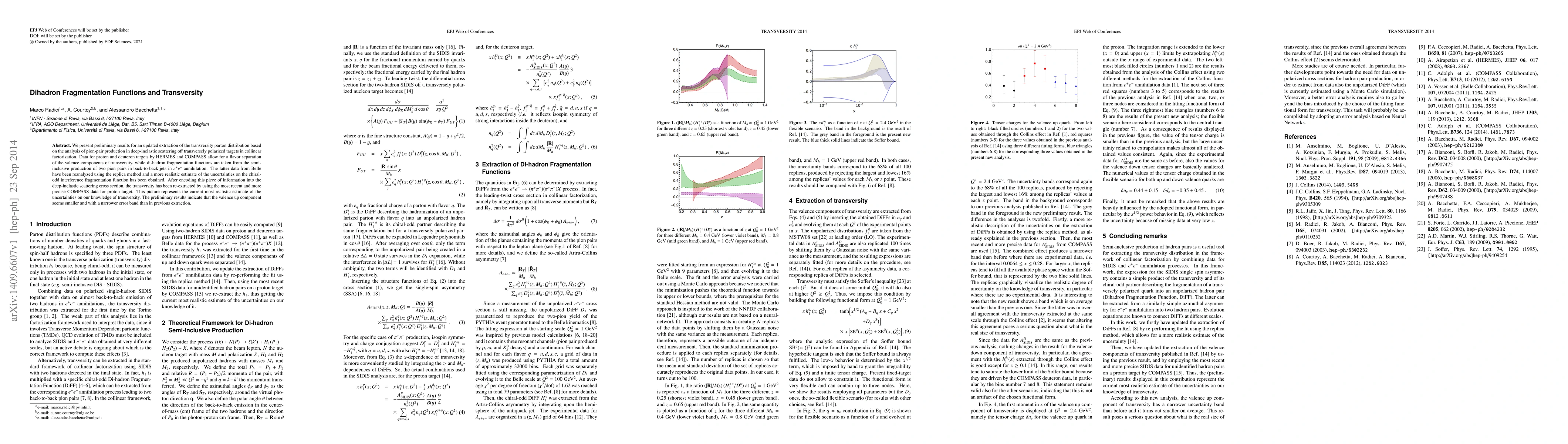 The paper presents an updated extraction of transversity parton distribution, incorporating advanced analysis techniques like the replica method for di-hadron fragmentation functions, leading to a more realistic uncertainty estimate.