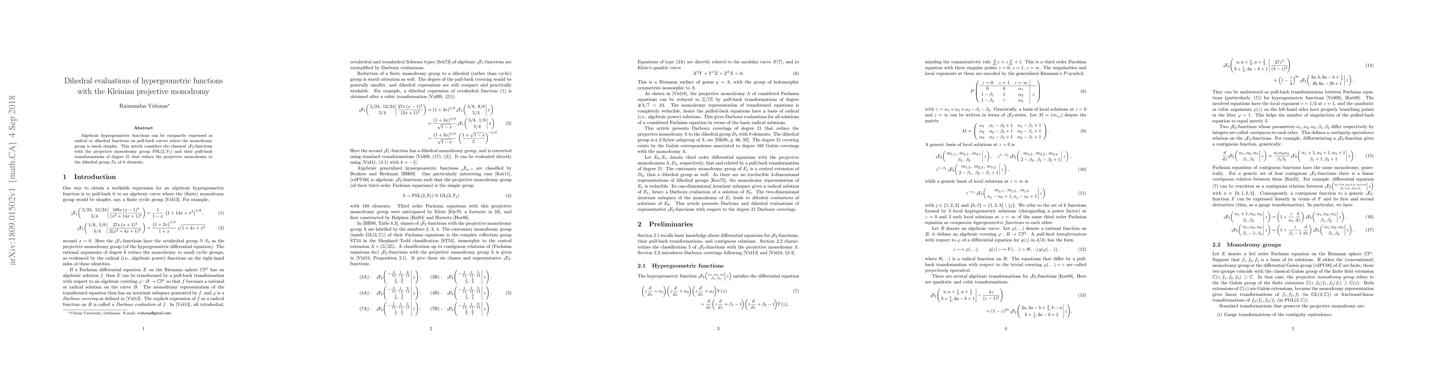 This paper explores algebraic hypergeometric functions, specifically 3F2-functions, expressed through dihedral functions on pull-back curves, simplifying their monodromy to the dihedral group D4, using the projective monodromy group PSL(2,F7).