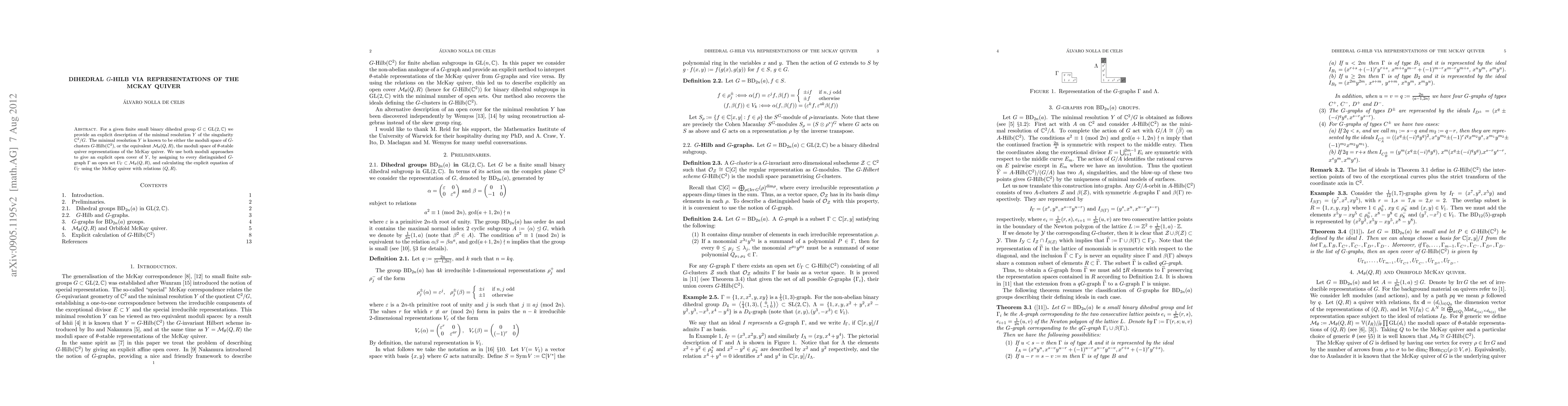 For a given small binary dihedral group G we use the classification of G-graphs to describe explicitly G-Hilb(C^2) by giving an affine open cover of M(Q,R), the moduli space of stable quiver representations.