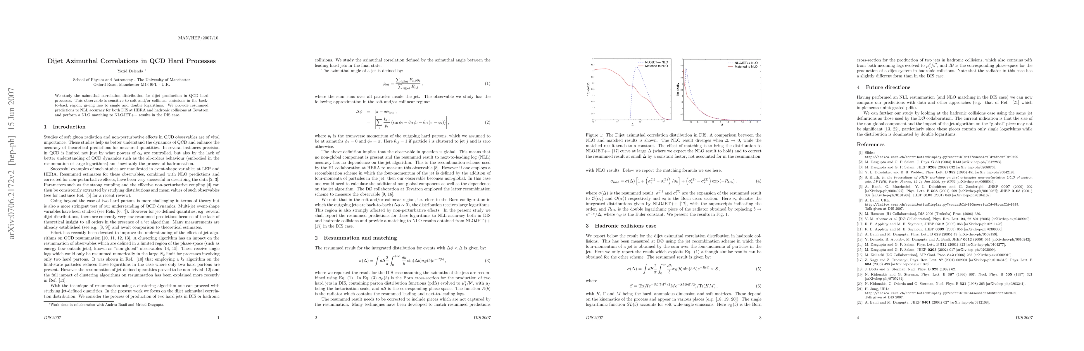 We study the azimuthal correlation distribution for dijet production in QCD hard processes. This observable is sensitive to soft and/or collinear emissions in the back-to-back region, giving rise to single and double logarithms. We provide resummed predictions to NLL accuracy for both DIS at HERA and hadronic collisions at Tevatron and perform a NLO matching to NLOJET++ results in the DIS case.