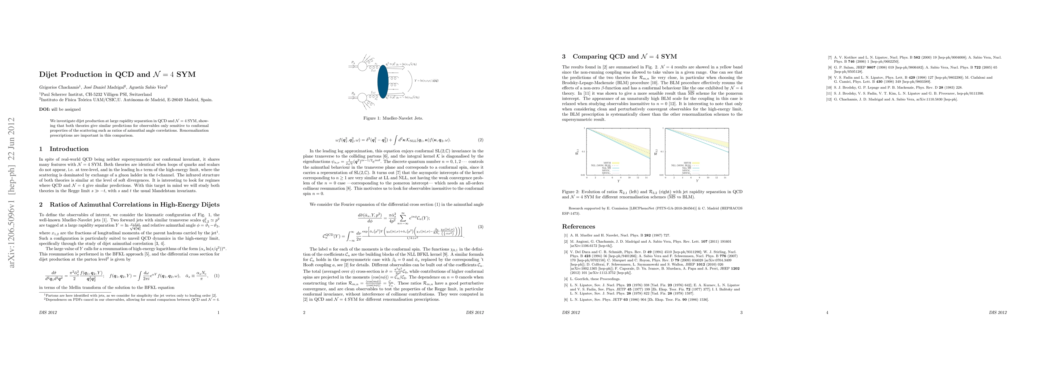 We investigate dijet production at large rapidity separation in QCD and N = 4 SYM, showing that both theories give similar predictions for observables only sensitive to conformal properties of the scattering such as ratios of azimuthal angle correlations. Renormalization prescriptions are important in this comparison.