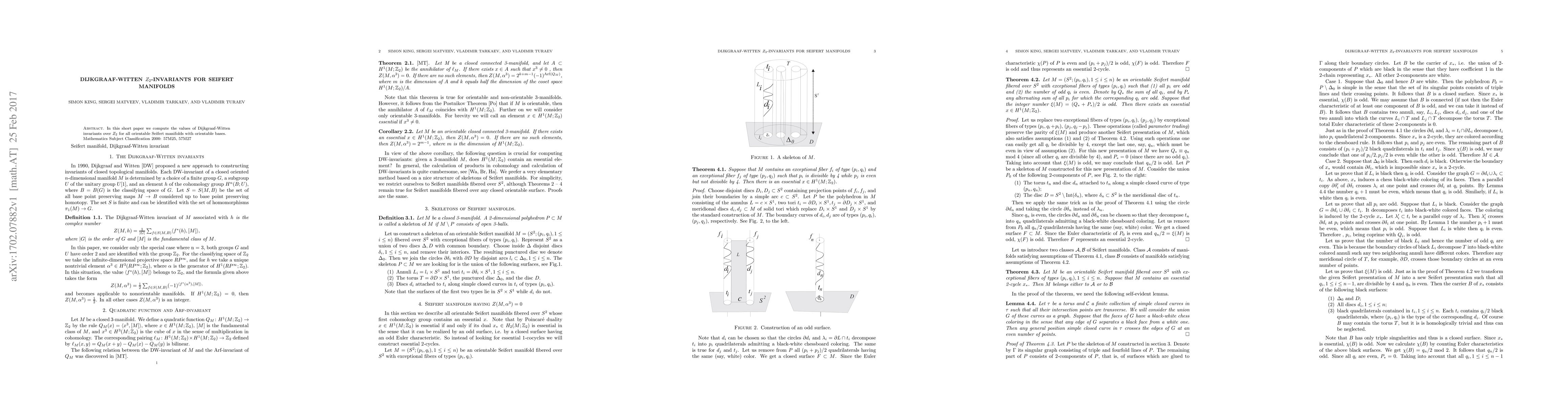 In this short paper we compute the values of Dijkgraaf-Witten invariants over $Z_2$ for all orientable Seifert manifolds with orientable bases.