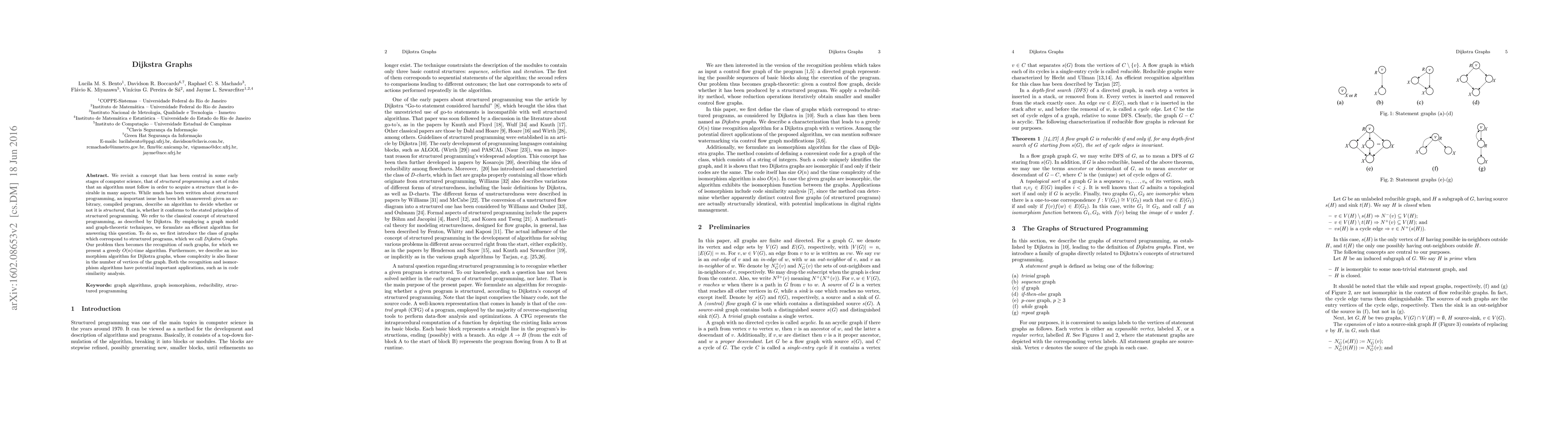 A graph model called Dijkstra Graphs is introduced to analyze structured programming in compiled programs. An efficient algorithm is presented for recognizing these graphs in O(n) time and an isomorphism algorithm with linear complexity.