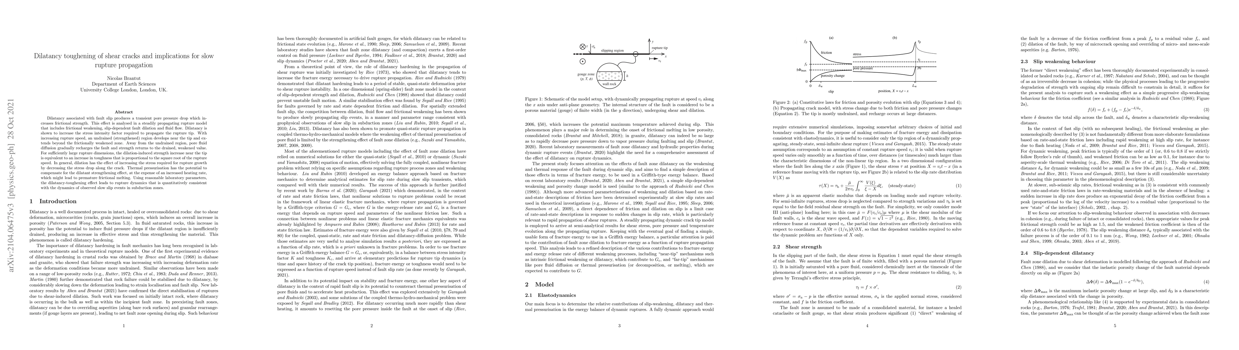 This paper investigates how dilatancy during fault slip enhances frictional strength, thereby increasing the stress required for rupture propagation. The study finds that dilatancy toughening can significantly slow rupture growth, aligning with observed slow slip events in subduction zones.