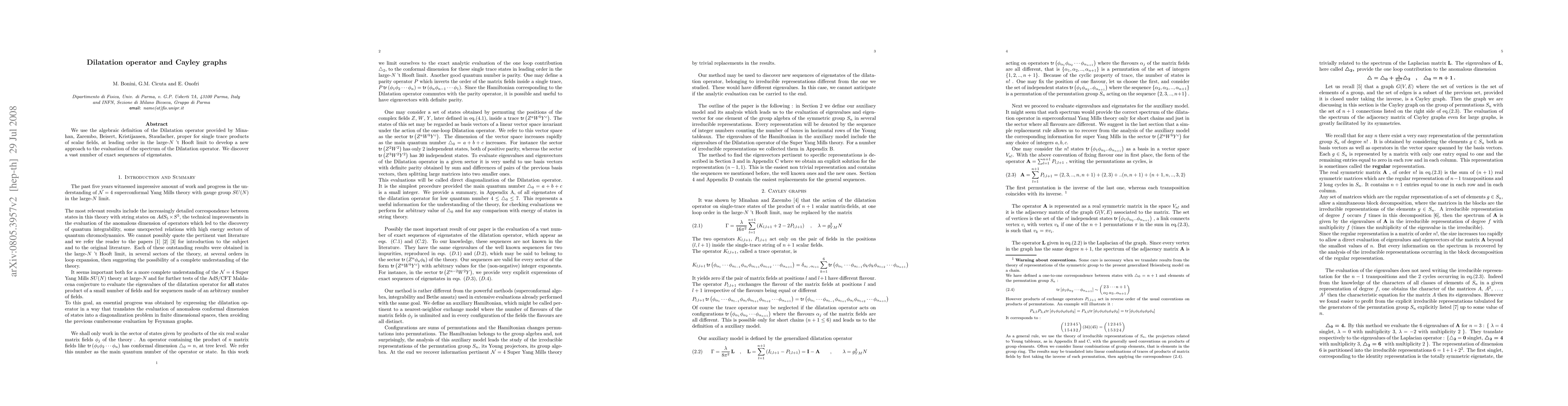 We use the algebraic definition of the Dilatation operator provided by Minahan, Zarembo, Beisert, Kristijansen, Staudacher, proper for single trace products of scalar fields, at leading order in the large-N 't Hooft limit to develop a new approach to the evaluation of the spectrum of the Dilatation operator. We discover a vast number of exact sequences of eigenstates.