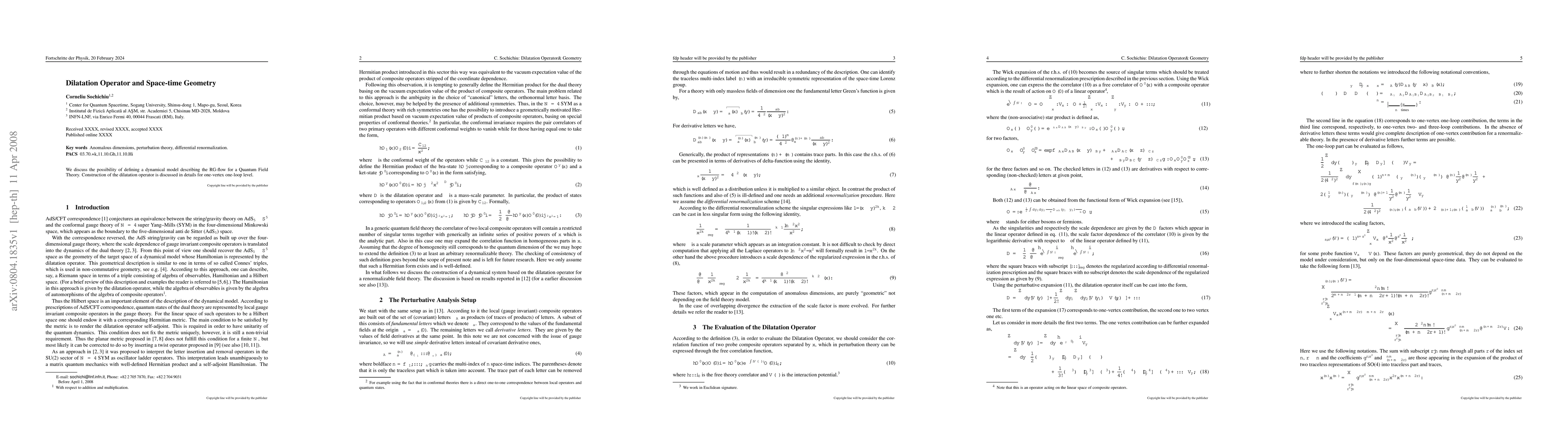 We discuss the possibility of defining a dynamical model describing the RG-flow for a Quantum Field Theory. Construction of the dilatation operator is discussed in details for one-vertex one-loop level.