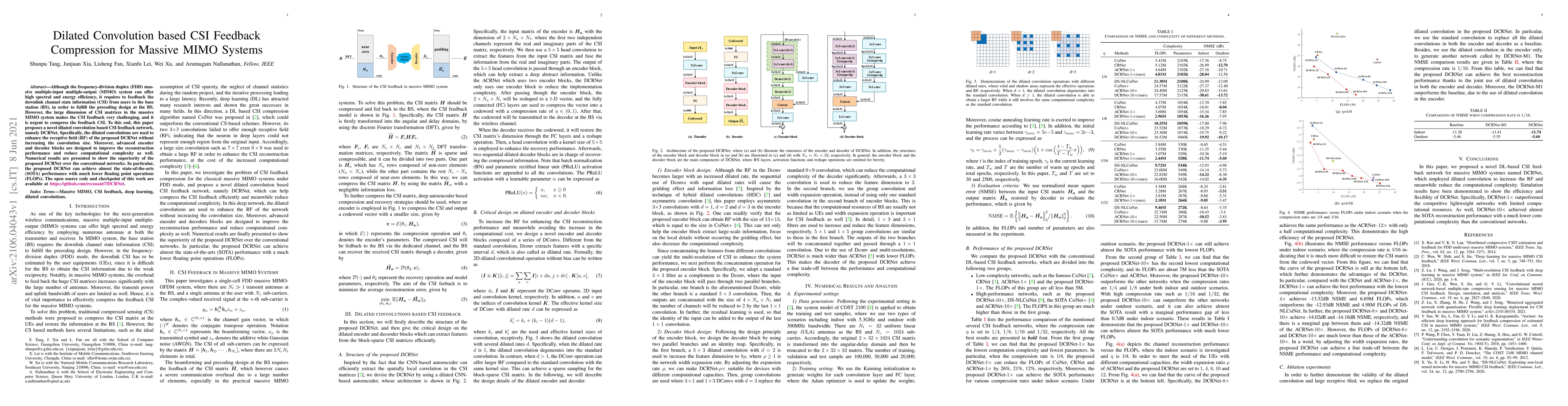 This paper proposes a dilated convolution based CSI feedback network, DCRNet, to compress channel state information in massive MIMO systems. The dilated convolutions enhance the network's receptive field without increasing complexity, while advanced encoder and decoder blocks improve reconstruction and reduce computational costs.