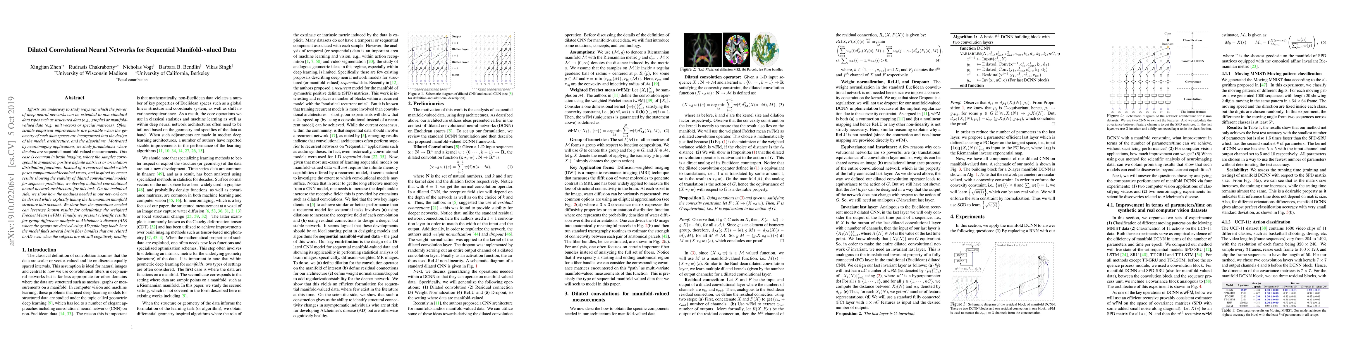 This paper proposes a dilated convolutional neural network for analyzing sequential manifold-valued data, specifically for neuroimaging applications. The model incorporates the Riemannian geometry of the data, leveraging the weighted Fréchet Mean, and demonstrates its effectiveness in identifying brain fiber bundles related to Alzheimer's disease.
