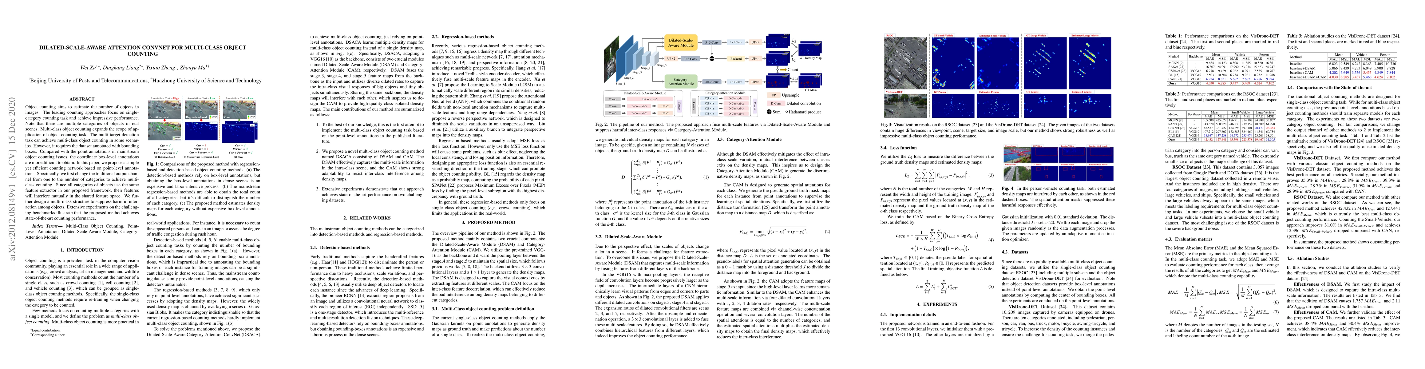 This paper proposes a Dilated-Scale-Aware Attention ConvNet for multi-class object counting using point-level annotations, addressing the challenge of mutual interference among object categories with a multi-mask structure, achieving state-of-the-art performance on benchmarks.