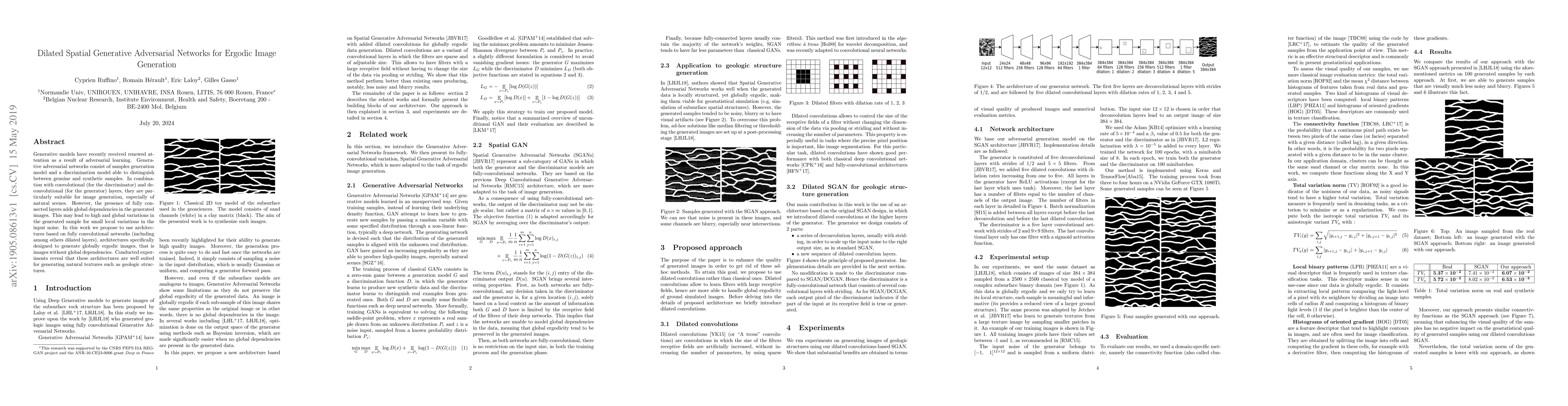 This paper proposes dilated spatial generative adversarial networks (GANs) to generate ergodic images without global dependencies, using fully convolutional architectures. Experiments show that these architectures effectively produce natural textures like geologic structures.