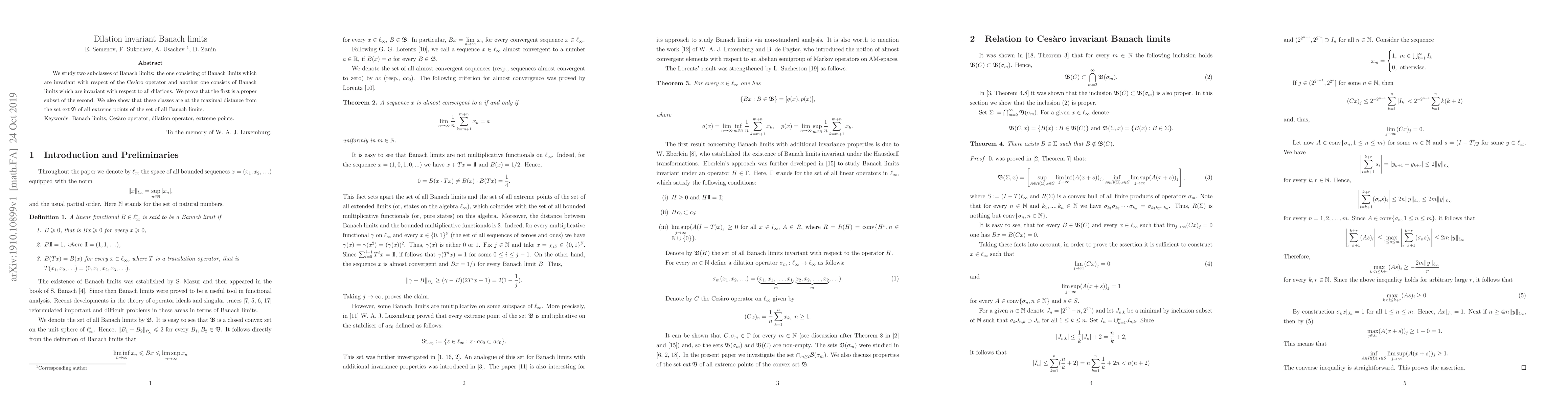 This paper investigates two subclasses of Banach limits: those invariant under the Cesàro operator and those invariant under all dilations. It proves that the former is a proper subset of the latter and demonstrates their maximal distance from the extreme points of the set of all Banach limits.
