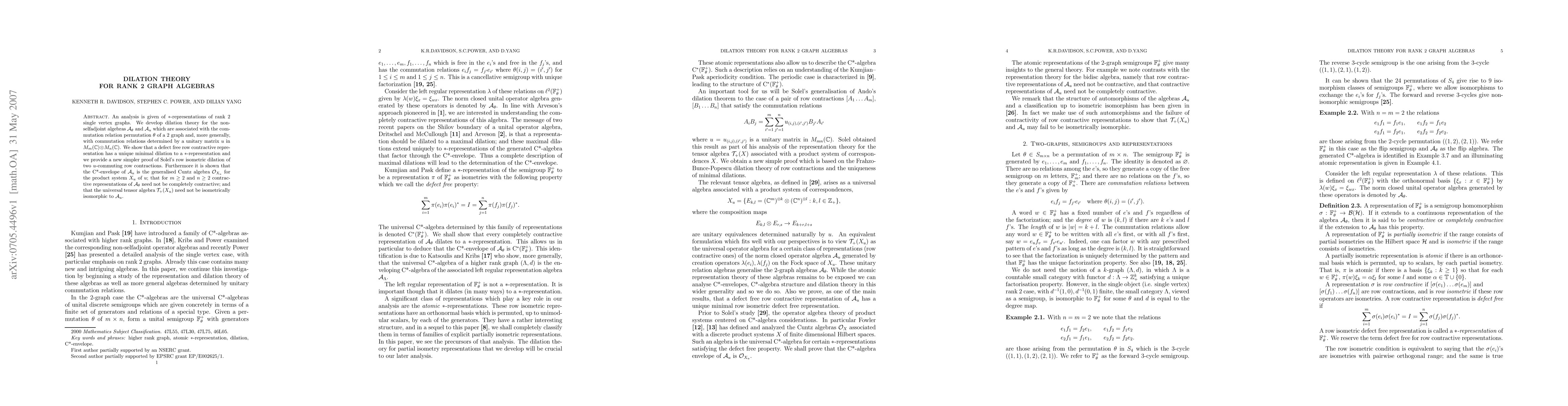 An analysis is given of $*$-representations of rank 2 single vertex graphs. We develop dilation theory for the non-selfadjoint algebras $\A_\theta$ and $\A_u$ which are associated with the commutation relation permutation $\theta$ of a 2 graph and, more generally, with commutation relations determined by a unitary matrix $u$ in $M_m(\bC) \otimes M_n(\bC)$. We show that a defect free row contractive representation has a unique minimal dilation to a $*$-representation and we provide a new simpler proof of Solel's row isometric dilation of two $u$-commuting row contractions. Furthermore it is shown that the C*-envelope of $\A_u$ is the generalised Cuntz algebra $\O_{X_u}$ for the product system $X_u$ of $u$; that for $m\geq 2 $ and $n \geq 2 $ contractive representations of $\Ath$ need not be completely contractive; and that the universal tensor algebra $\T_+(X_u)$ need not be isometrically isomorphic to $\A_u$.