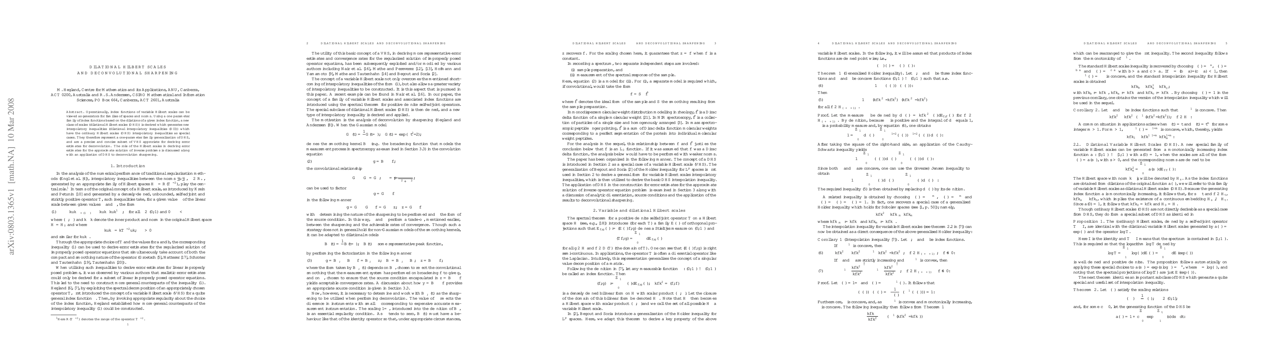 Operationally, index functions of variable Hilbert scales can be viewed as generators for families of spaces and norms. Using a one parameter family of index functions based on the dilations of a given index function, a new class of scales (dilational Hilbert scales (DHS)) is derived which generates new interpolatory inequalities (dilational interpolatory inequalities (DII)) which have the ordinary Hilbert scales (OHS) interpolatory inequalities as special cases. They therefore represent a one-parameter family generalization of OHS, and are a precise and concise subset of VHS approriate for deriving error estimates for deconvolution. The role of the Hilbert scales in deriving error estimates for the approximate solution of inverse problems is discussed along with an application of DHS to deconvolution sharpening.