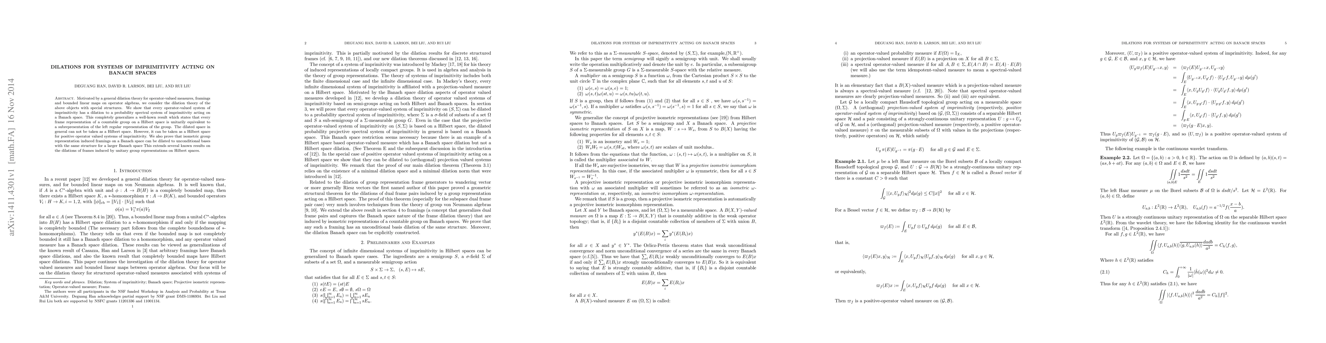 This paper explores dilation theory for operator-valued systems of imprimitivity on Banach spaces, showing that such systems can be dilated to probability spectral systems. It extends classical results by proving that these dilations can occur in Banach spaces, not just Hilbert spaces, and introduces new dilations for isometric group representations.
