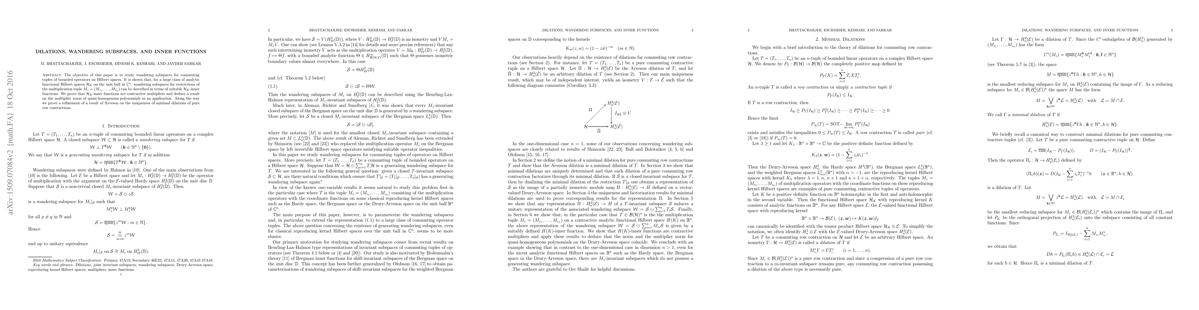 This paper studies wandering subspaces for commuting operators on Hilbert spaces, showing that suitable inner functions can describe these subspaces and leading to a refinement of Arveson's result on minimal dilations.