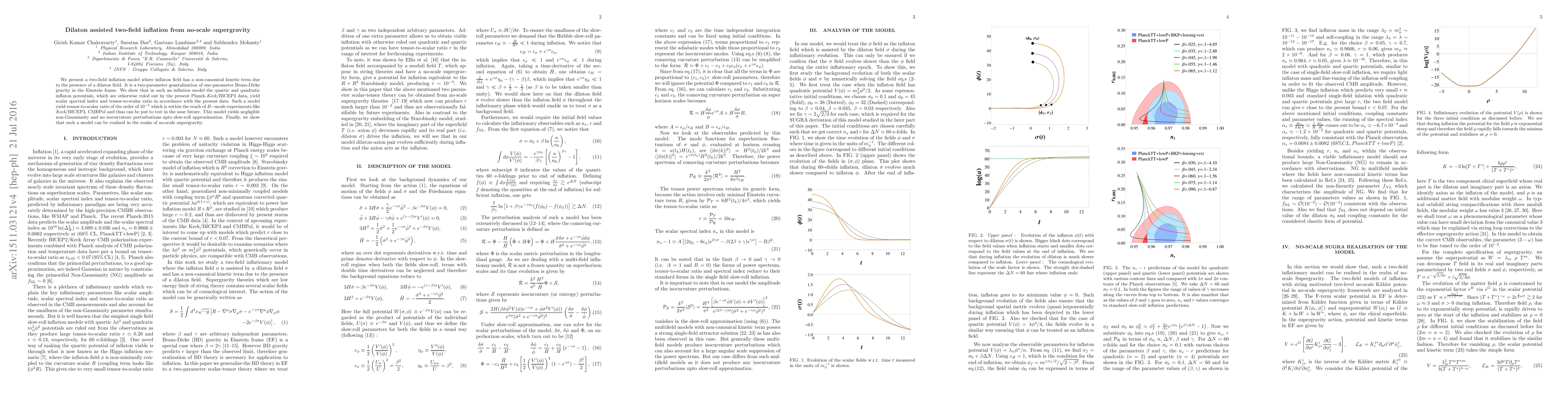 We present a two-field inflation model where inflaton field has a non-canonical kinetic term due to the presence of a dilaton field. It is a two-parameter generalization of one-parameter Brans-Dicke gravity in the Einstein frame. We show that in such an inflation model the quartic and quadratic inflaton potentials, which are otherwise ruled out by the present Planck-{\it Keck}/BICEP2 data, yield scalar spectral index and tensor-to-scalar ratio in accordance with the present data. Such a model yield tensor-to-scalar ratio of the order of $10^{-2}$ which is within the reach of $B-$mode experiments like {\it Keck}/BICEP3, CMBPol and thus can be put to test in the near future. This model yields negligible non-Gaussianity and no isocurvature perturbations upto slow-roll approximation. Finally, we show that such a model can be realised in the realm of no-scale supergravity.