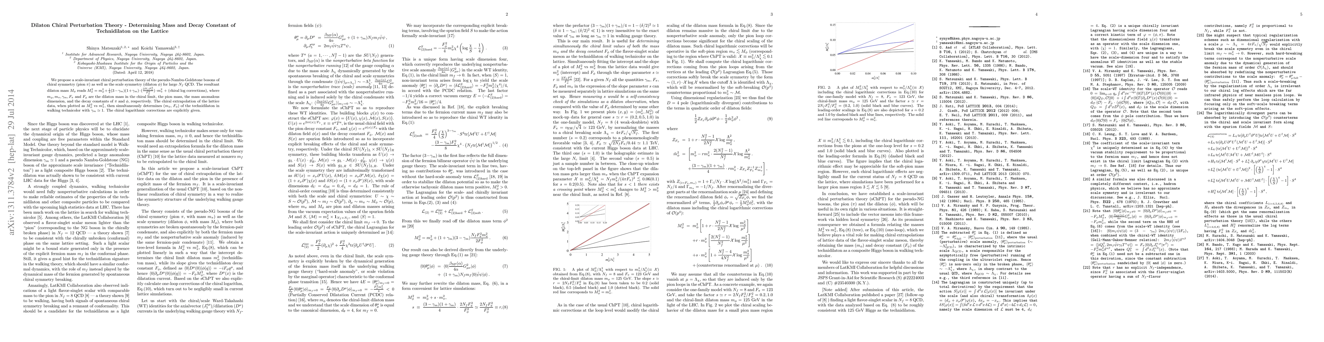 The paper introduces a scale-invariant chiral perturbation theory for large N_f QCD, incorporating both pion and dilaton (technidilaton) as pseudo-Nambu-Goldstone bosons. It provides a formula for dilaton mass M_phi, involving pion mass, mass anomalous dimension, and decay constants. The chiral extrapolation of lattice data is used to simultaneously determine the dilaton mass and decay constant in walking technicolor models.