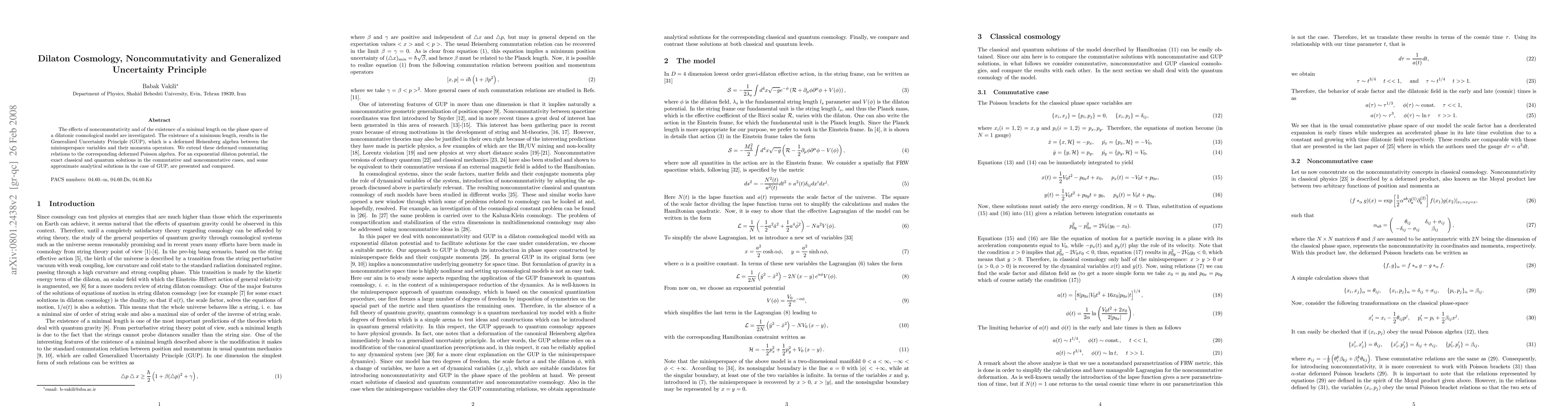 The research investigates the effects of noncommutativity and a minimal length on a dilatonic cosmological model, extending deformed commutative relations to a deformed Poisson algebra. It presents exact classical and quantum solutions for an exponential dilaton potential in both commutative and noncommutative cases, along with approximate analytical solutions for the Generalized Uncertainty Principle (GUP) scenario.
