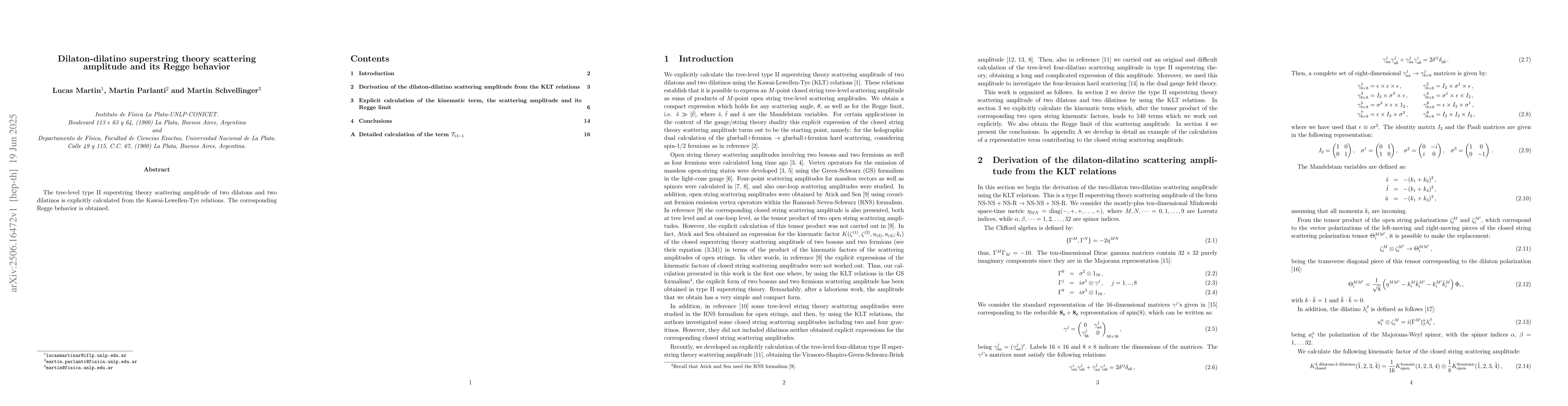 The tree-level type II superstring theory scattering amplitude of two dilatons and two dilatinos is explicitly calculated from the Kawai-Lewellen-Tye relations. The corresponding Regge behavior is obtained.