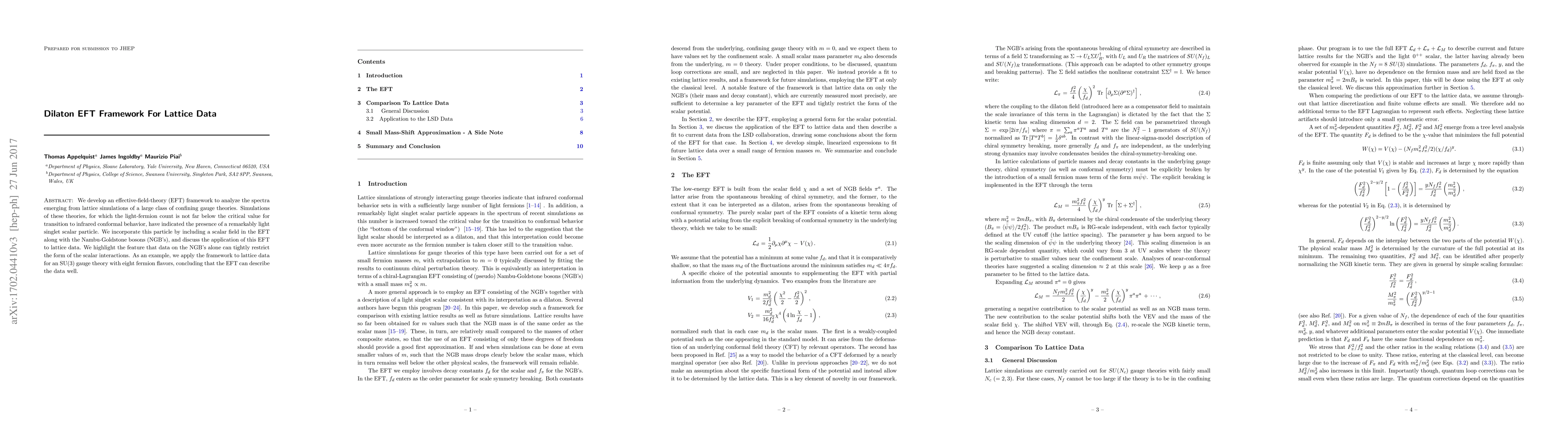 This paper develops an effective-field-theory (EFT) framework to analyze spectra from lattice simulations of confining gauge theories, focusing on the presence of a light singlet scalar particle. The EFT incorporates both Nambu-Goldstone bosons and the scalar field, demonstrating that lattice data on NGBs can tightly constrain scalar interactions, as shown in an SU(3) gauge theory example.