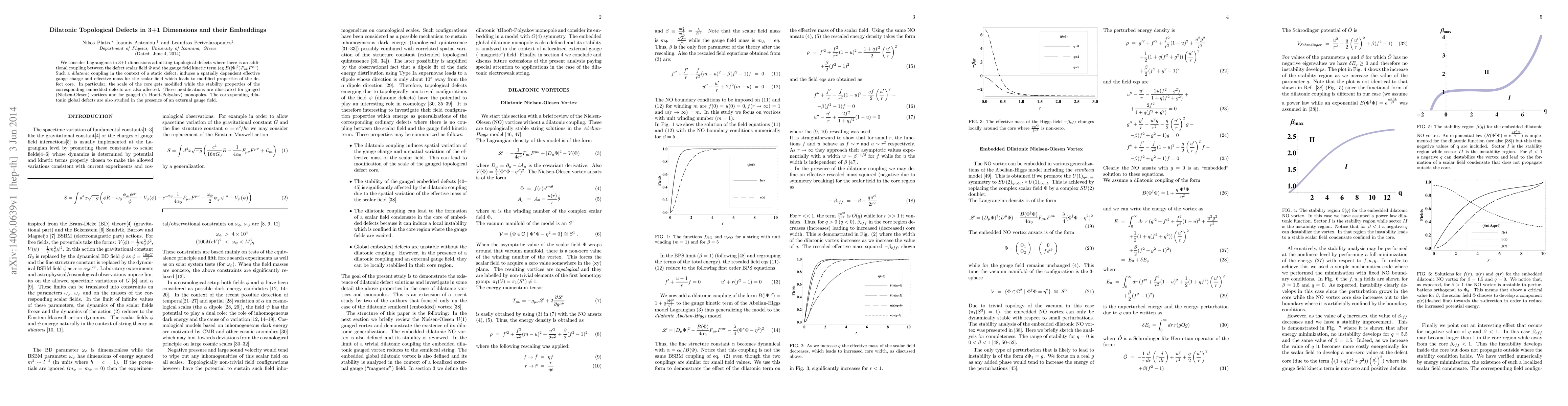 This paper investigates Lagrangians in 3+1 dimensions with topological defects involving dilatonic couplings between a scalar field and gauge field kinetic terms. Such couplings modify the defect core scale and stability properties, demonstrated through gauged vortices and monopoles, and examined in the presence of external gauge fields.