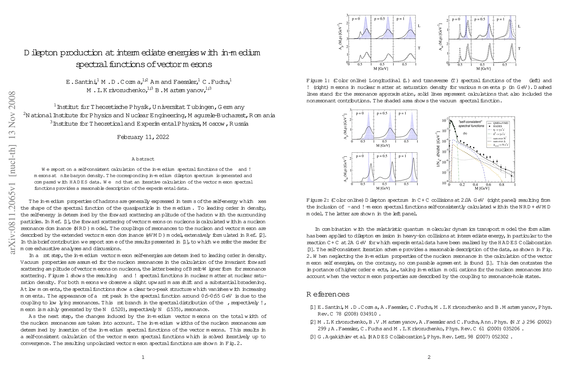 This paper presents a self-consistent calculation of the in-medium spectral functions of rho and omega mesons, showing that iterative methods yield a reasonable description of the corresponding dilepton spectrum, which aligns with HADES experimental data.