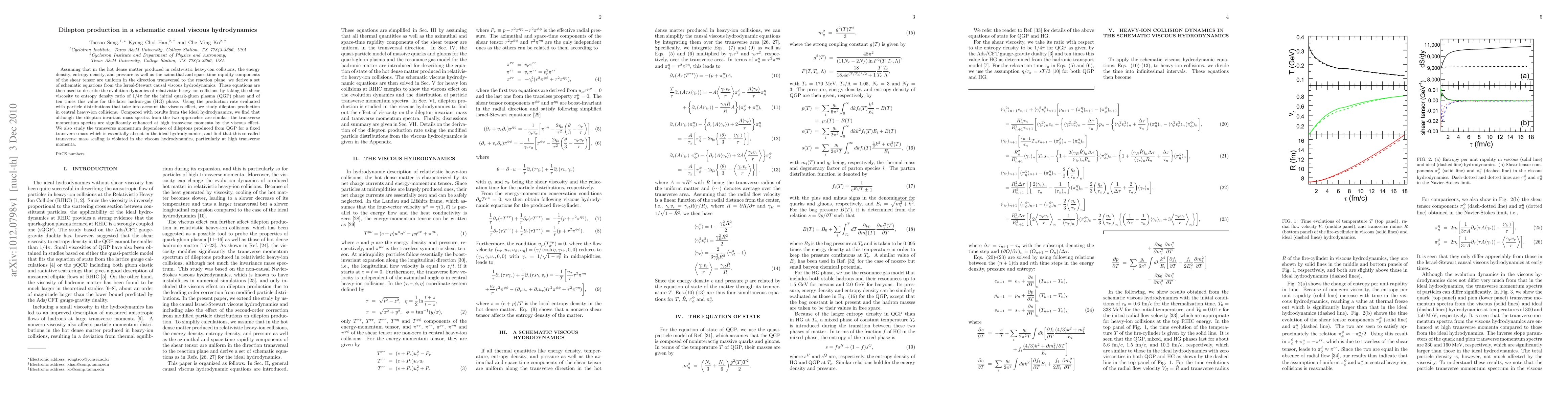 This paper derives a set of schematic equations from Israel-Stewart causal viscous hydrodynamics to describe the dynamics of relativistic heavy-ion collisions, finding that viscous effects significantly enhance high transverse momentum dilepton production and violate transverse mass scaling compared to ideal hydrodynamics.