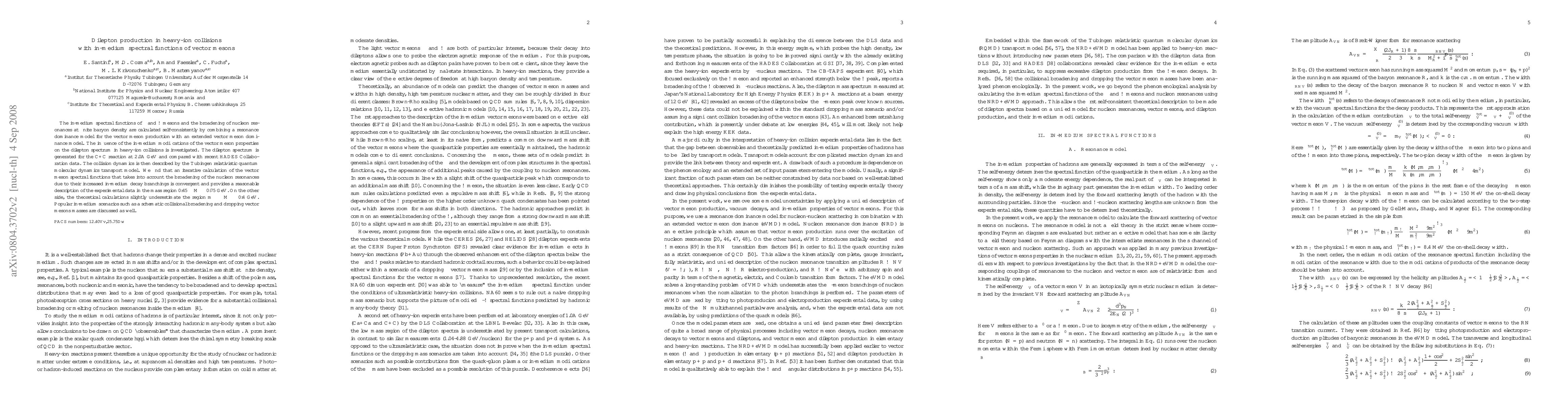 This paper investigates the influence of in-medium spectral functions of $\rho$ and $\omega$ mesons on dilepton production in heavy-ion collisions, using a combined resonance dominance and extended vector meson dominance model. The study finds that the iterative calculation of vector meson spectral functions, considering nucleon resonance broadening, provides a good fit to experimental data in the mass range $0.45\leq M \leq 0.75$ GeV.