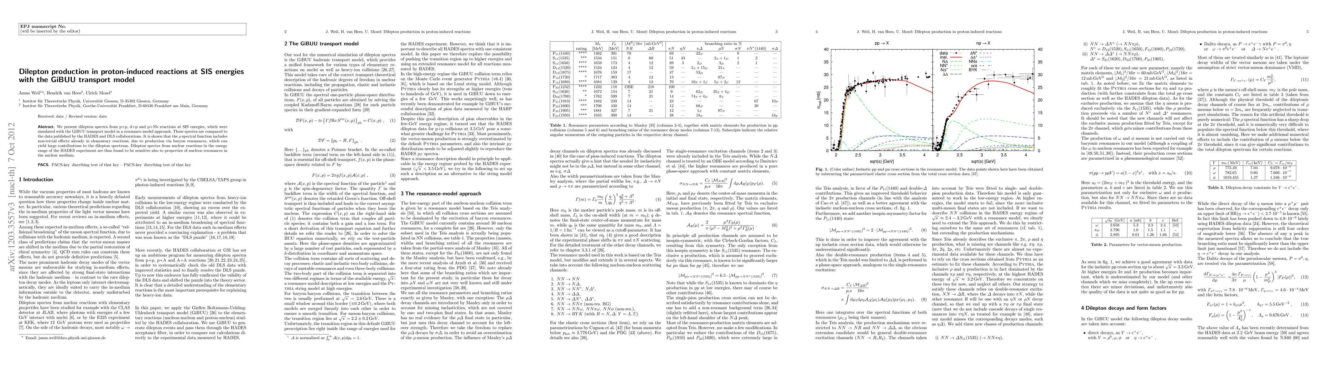 Researchers used the GiBUU transport model to simulate dilepton spectra from proton-induced reactions at SIS energies, revealing non-trivial effects from baryon resonance production in both elementary and nuclear reactions.