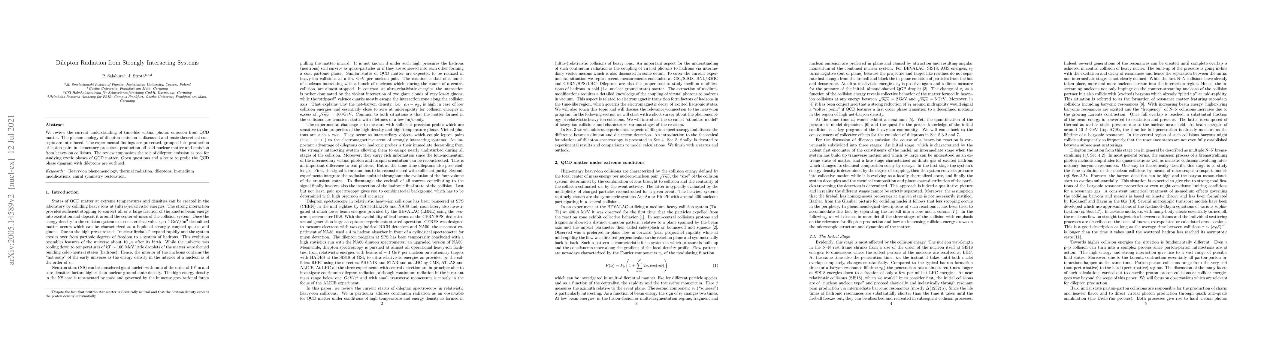 We review the current understanding of time-like virtual photon emission from QCD matter. The phenomenology of dilepton emission is discussed and basic theoretical concepts are introduced. The experimental findings are presented, grouped into production of lepton pairs in elementary processes, production off cold nuclear matter and emission from heavy-ion collisions. The review emphasizes the role of dilepton emission as tool for studying exotic phases of QCD matter. Open questions and a route to probe the QCD phase diagram with dileptons are outlined.