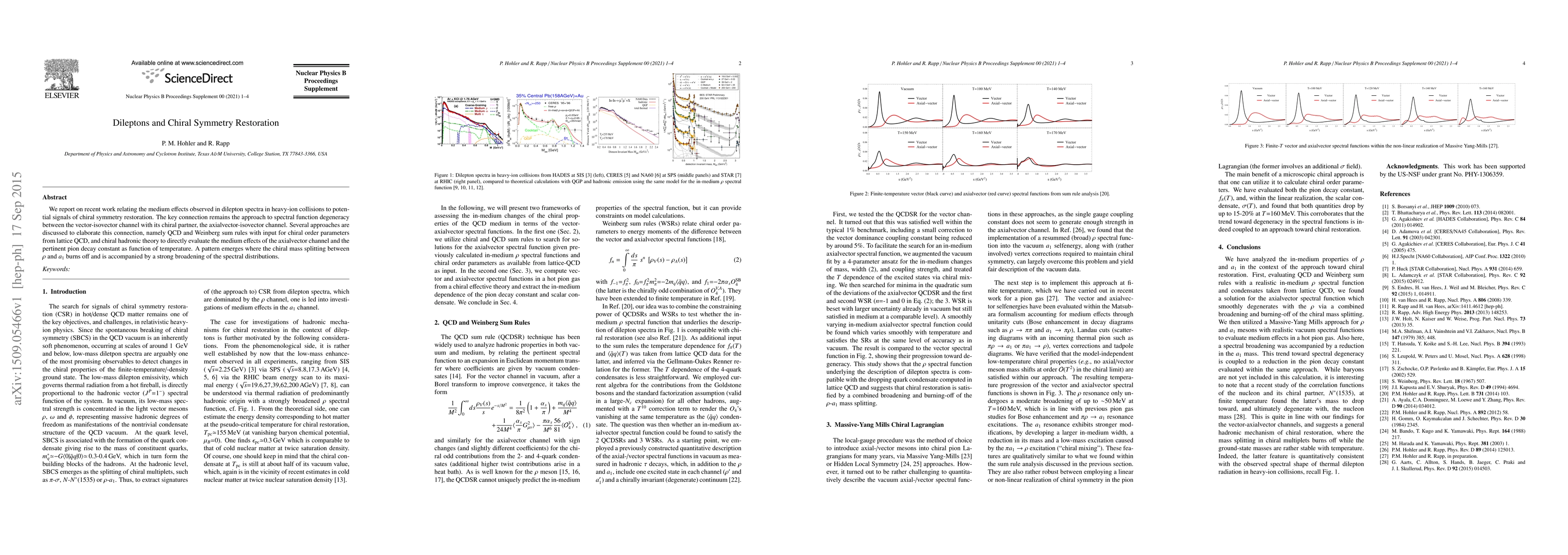 This paper investigates the link between dilepton spectra in heavy-ion collisions and chiral symmetry restoration, focusing on the degeneracy of spectral functions between vector and axialvector channels. It employs various theoretical approaches, including QCD and lattice QCD, to explore the disappearance of chiral mass splitting and the broadening of spectral distributions with temperature.